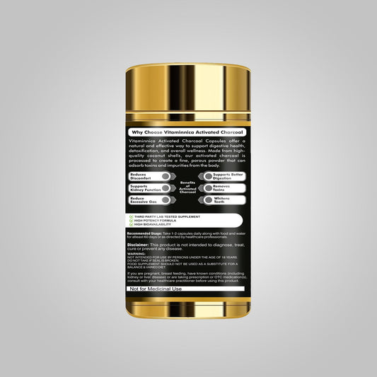 Vitaminnica Activated Charcoal 300mg- Supports Detox & Gas Relief- 60 Capsules