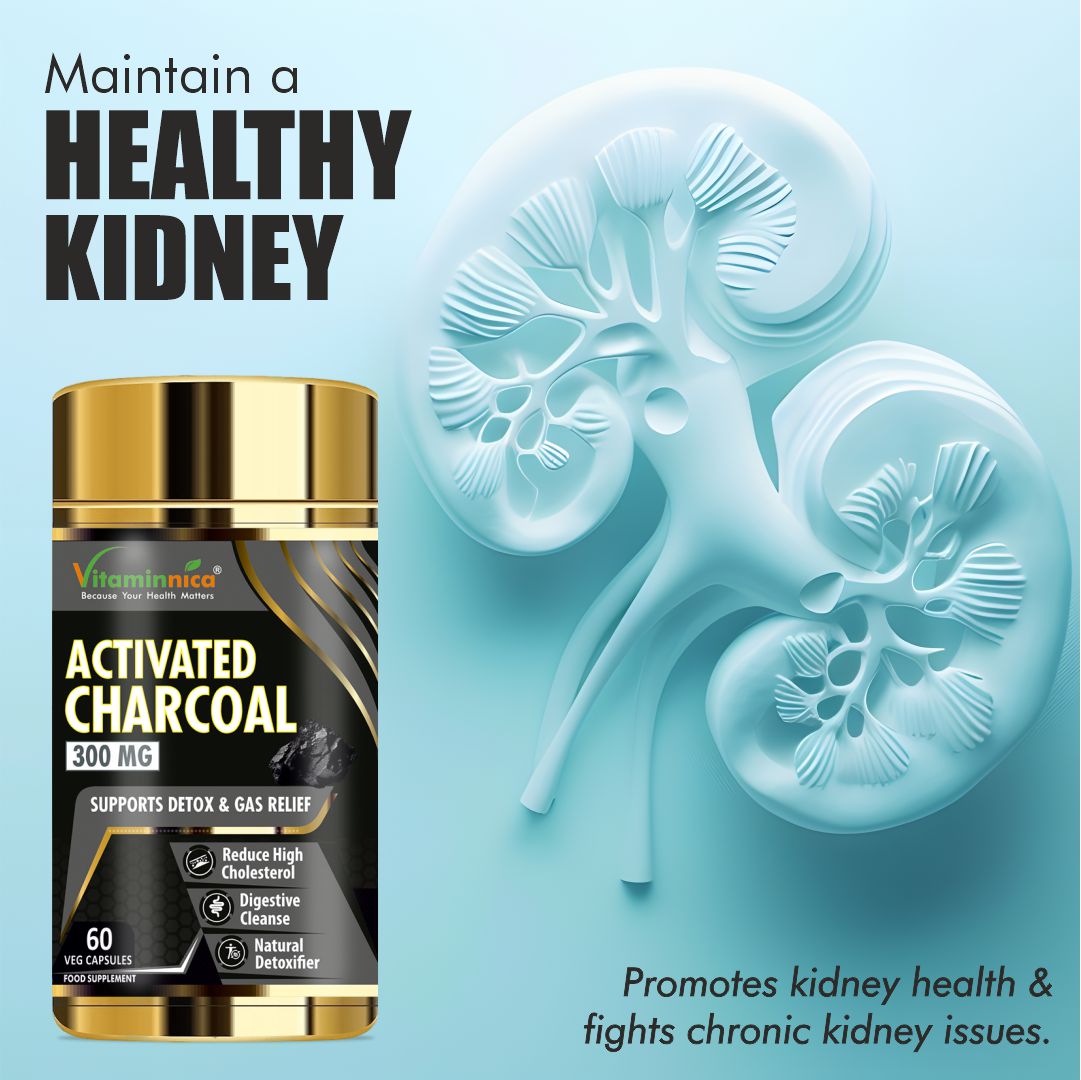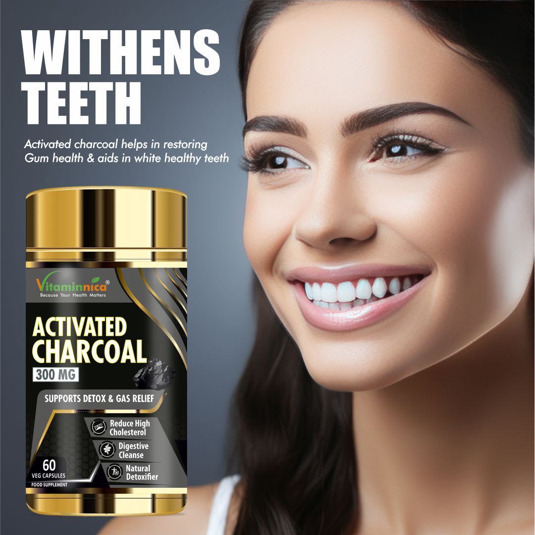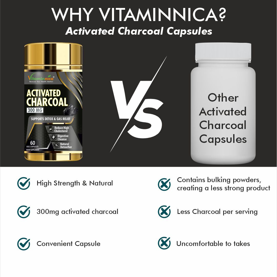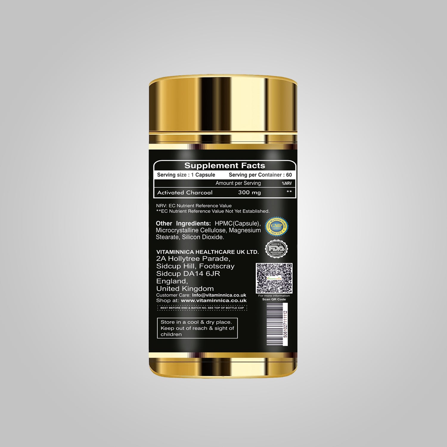 Vitaminnica Activated Charcoal 300mg- Supports Detox & Gas Relief- 60 Capsules